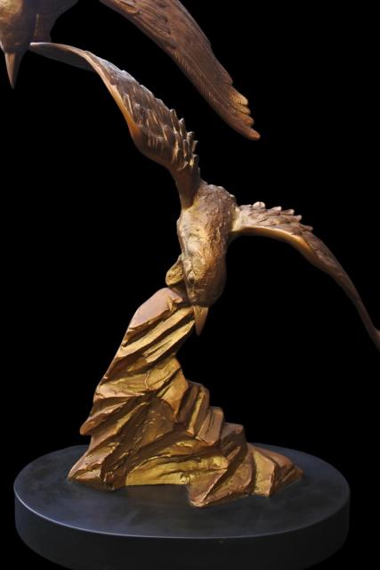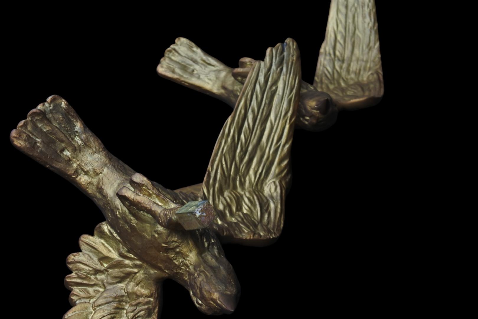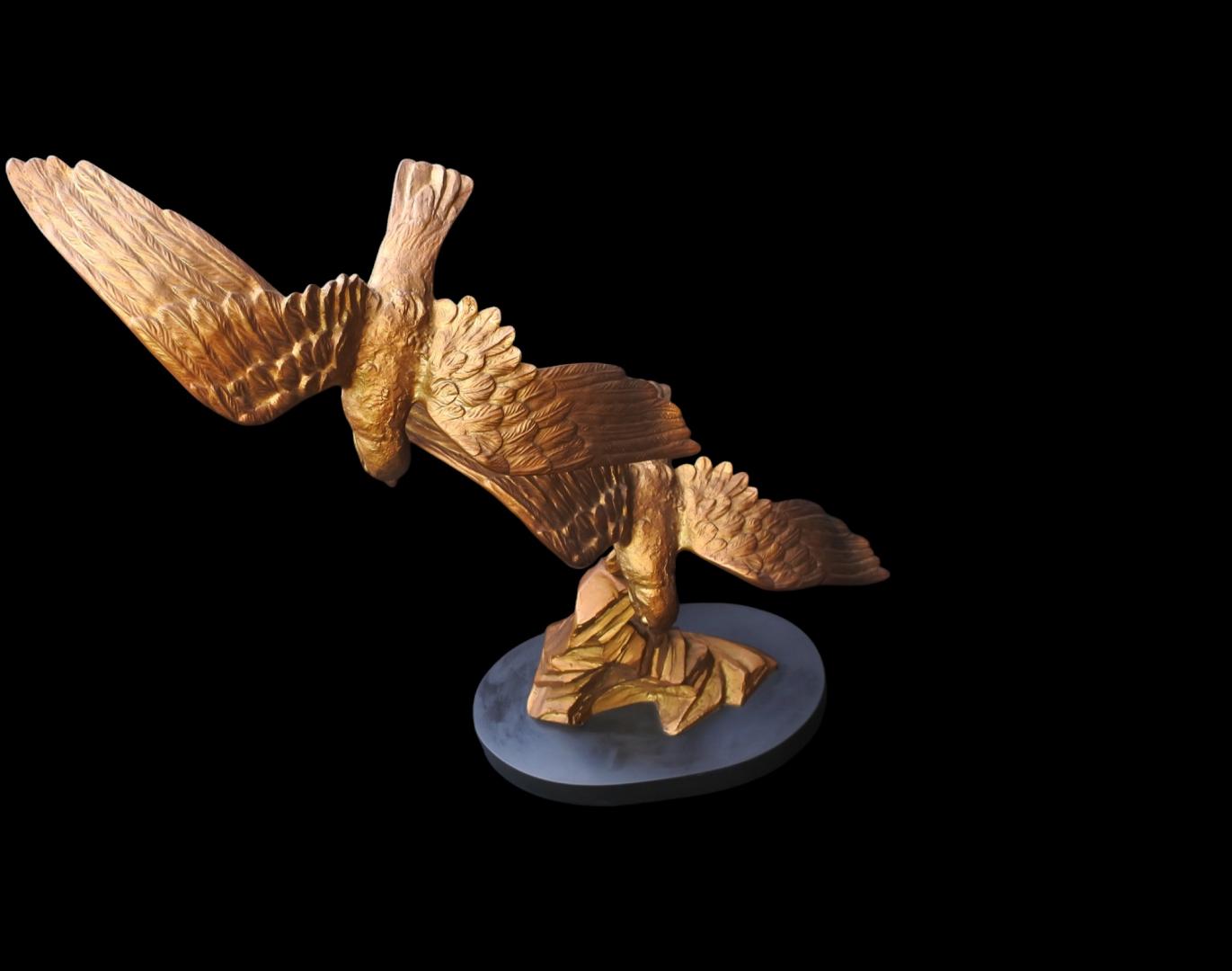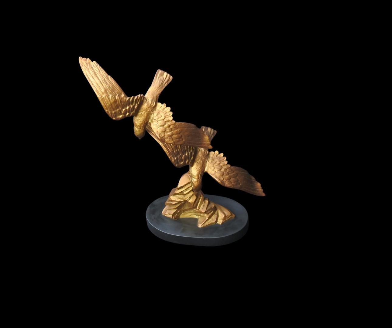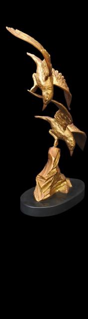 E. Tissot (école française – XXe siècle). Bronze doré signé. Estampillé du nom de la fonderie JBD. Sur un socle en marbre Noire de Mazy. Très bon état. H : 70 – L : 56 – P : 24 cm.