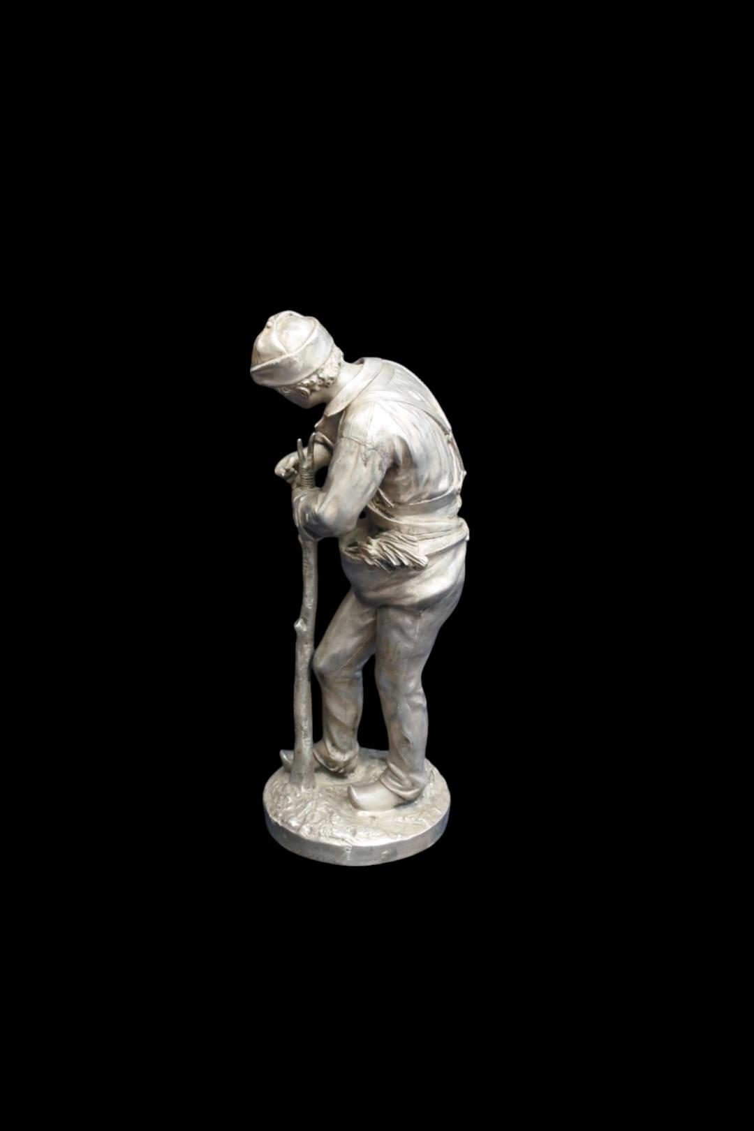 Epreuve en bronze argenté à la marque Christofle & Cie. Numérotée 1734951 et portant une signature de Eugène Longepied (1849 – 1888). H: 32 cm. – 3 kilos Excellent état.