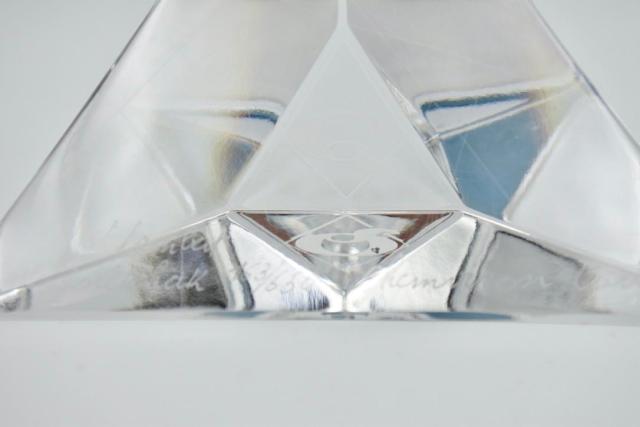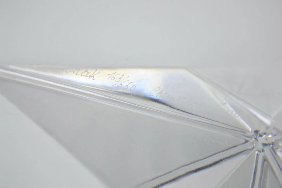 Presse-papier en cristal de l'artiste verrier international Yan Zoritchak. Signé. Édition limitée : 163 / 650. Chemviron Carbon. Avec logo. Dimensions : 11,5 * 11,5 * 11,5 * 3 cm. En très bon état.