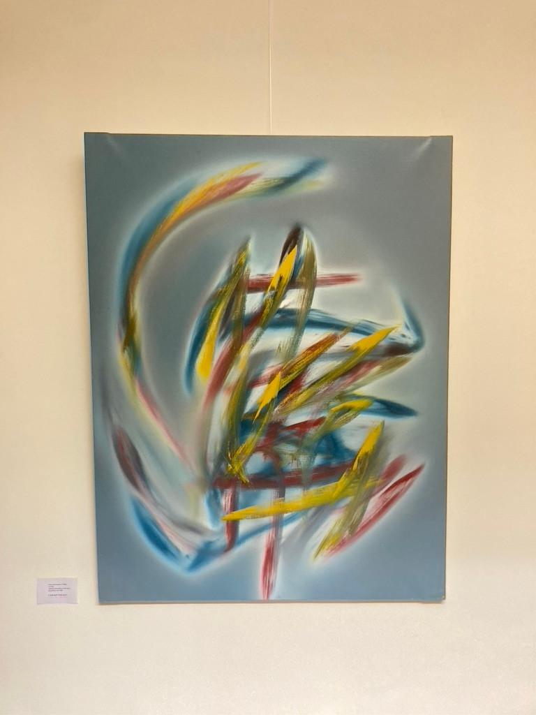 Colourful abstract work by the famous Belgian artist Yves Zurstrassen. The work displays his characteristic lyrical abstraction with dynamic layering. Oil on canvas. Signed on the reverse Zurstrassen Brussels May 84. 60 * 92 cm.