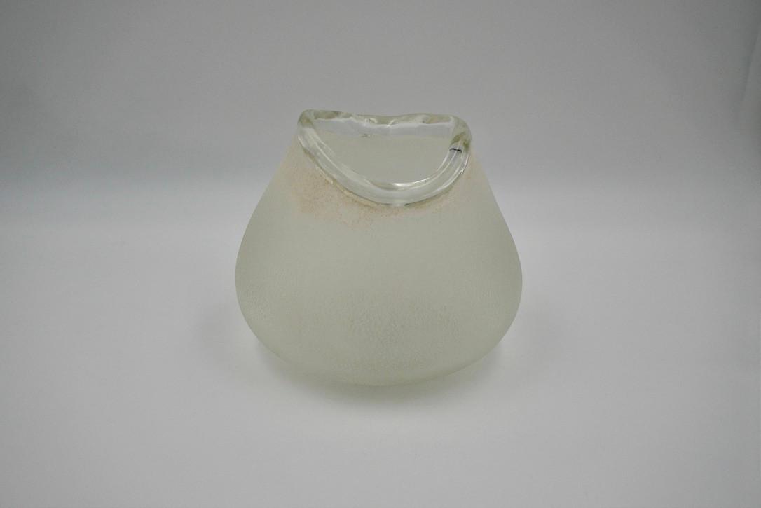 Agua na boca. Deze vaas van Murano-glaspasta verleidt met zijn royale, afgeronde vorm en fijnkorrelige granietstructuur, subtiel gematteerd en in elegant contrast met de doorschijnende, volle rand. De ronde, biomorfe lijnen zorgen voor een organisch ontwerp dat rechtstreeks door de natuur is geïnspireerd. Een sculpturaal object met een luxueuze en tijdloze uitstraling. Afmetingen (cm): diameter 22 × H 18