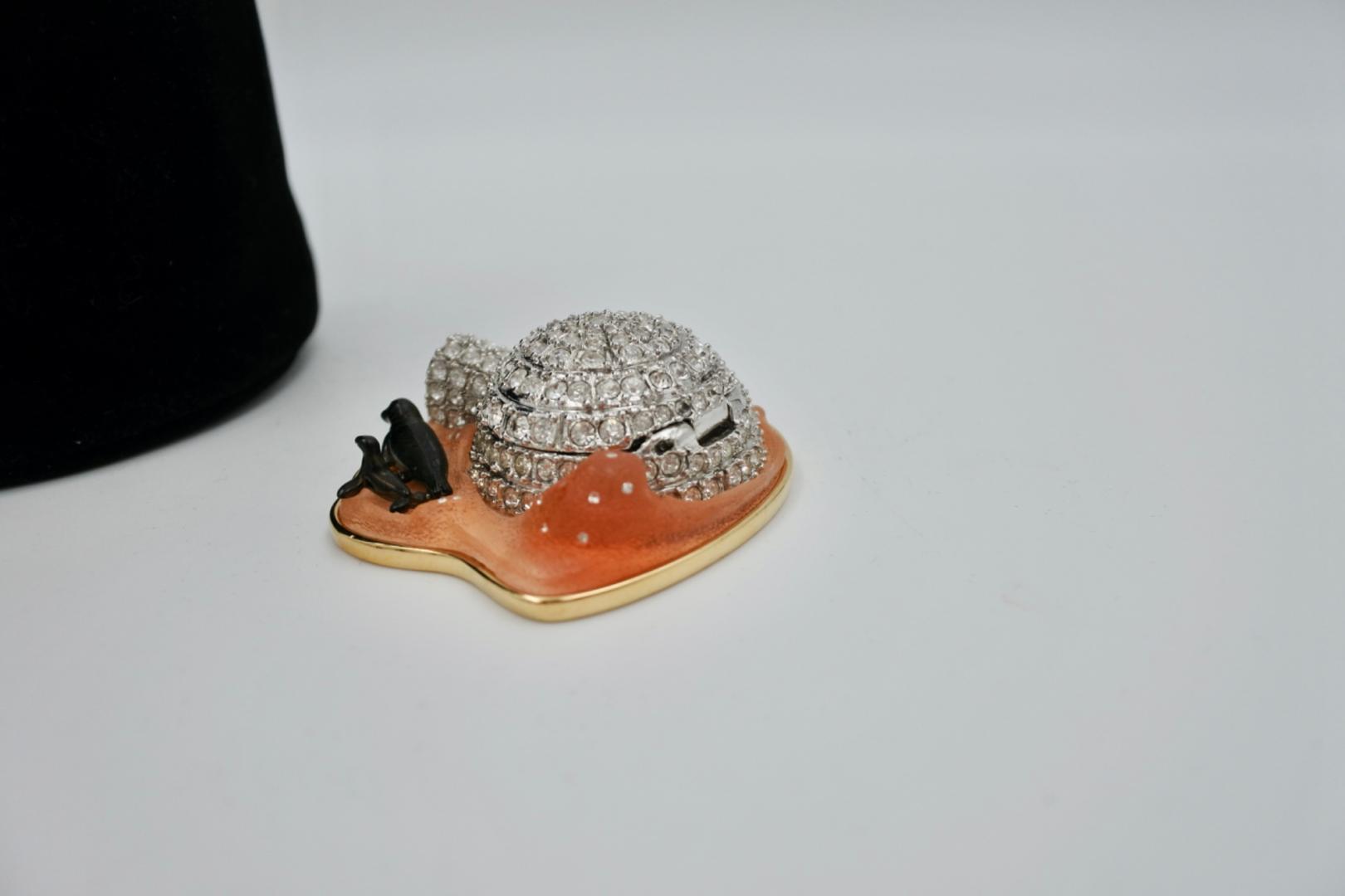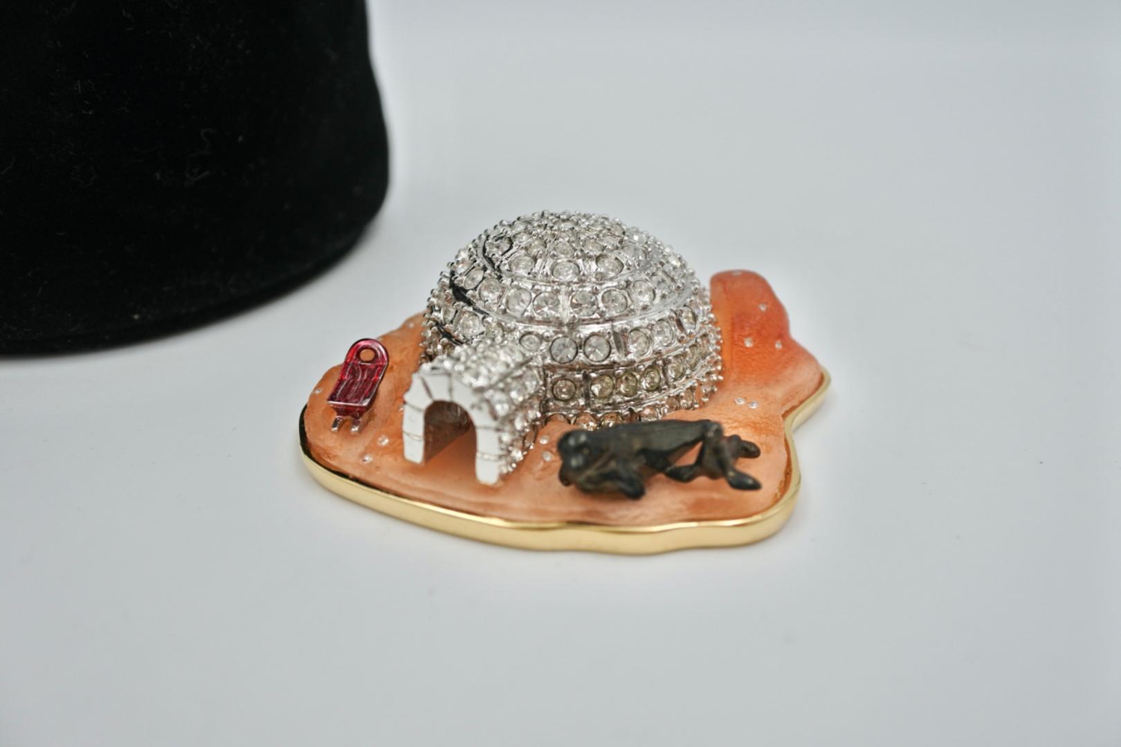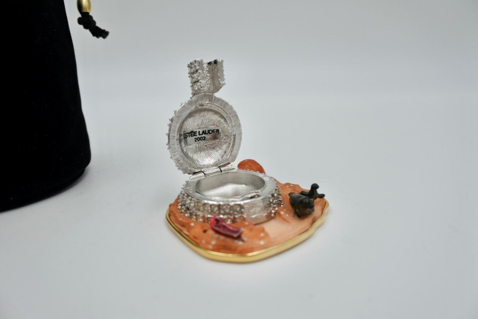 Een elegant en zeldzaam verzamelobject uit de Estée Lauder Solid Perfume Collectibles-lijn. De vaste parfum is verdwenen. De Igloo is een verfijnd parfumjuweeltje met een delicate afwerking. Het wordt geleverd met een fluwelen zakje.