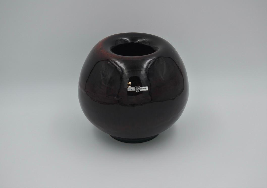 This elegant HEIBI vase stands out thanks to its powerful, spherical silhouette and deep, warm red glaze with subtle darker nuances. The high-gloss surface creates a beautiful depth effect and reflects the light in a refined way, giving the vase a distinctly sculptural look. The sleek opening and balanced proportions make this object suitable both as a functional vase and as an autonomous design piece. The vase is numbered 1132, which indicates controlled production and contributes to its collectible value. A timeless and characterful object that fits perfectly into a modern or minimalist interior, but also combines beautifully with eclectic or classic settings. H: 18 cm. - 1,4 kilo