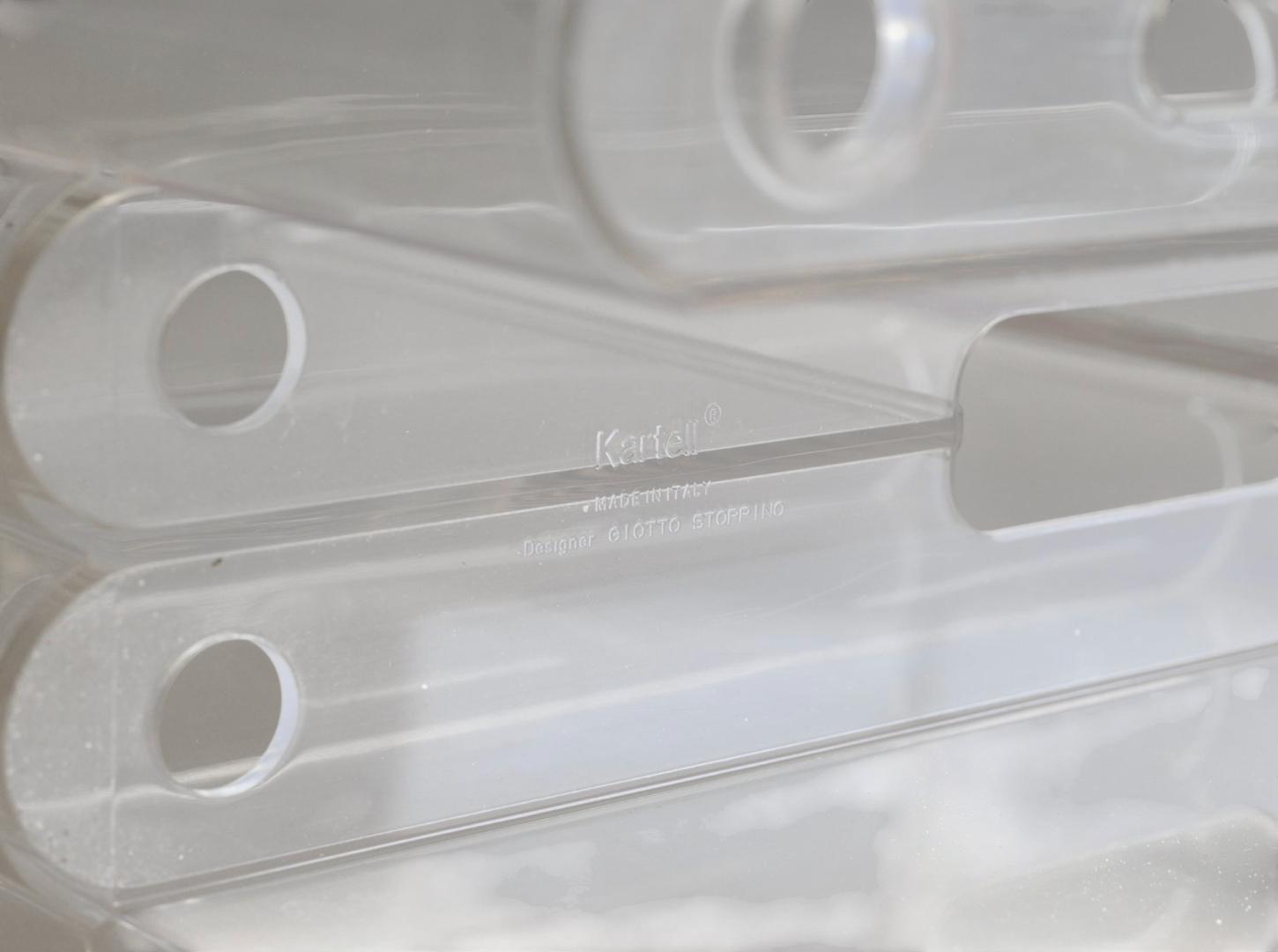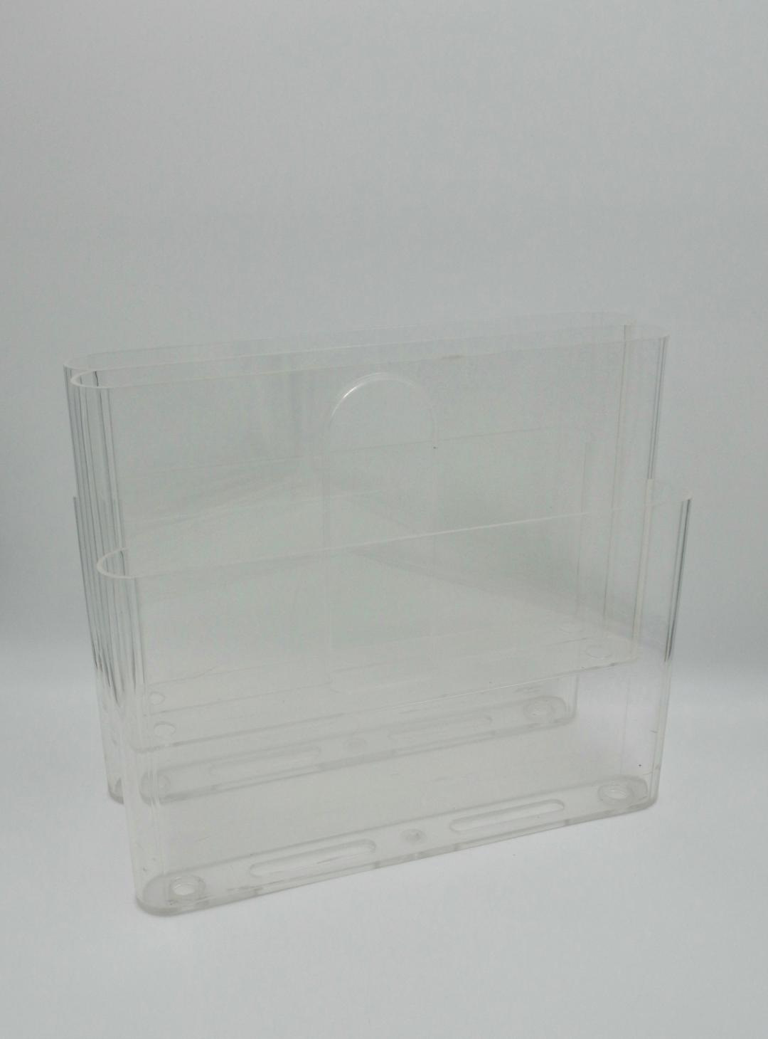 Doorzichtige kunststof tijdschriftenhouder van Giotto Stoppino voor Kartell, met 4 vakken voor tijdschriften. Gemerkt aan de onderkant. In zeer goede staat, met normale gebruikssporen. H: 35 cm. – B: 40 cm. - D: 18 cm.