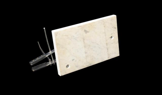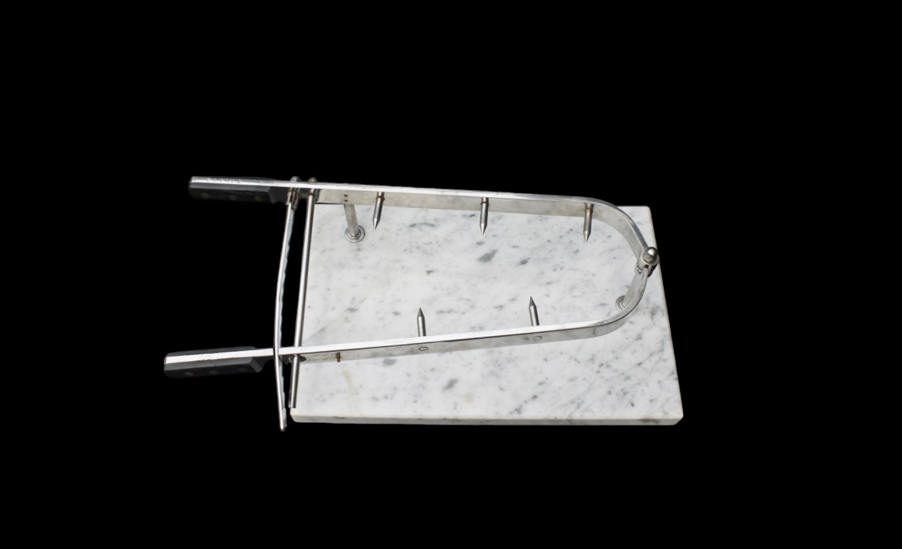 Inox hamklem op marmeren plaat. L: 56 cm. – Gerbruikt met minimale gebruikssporen.