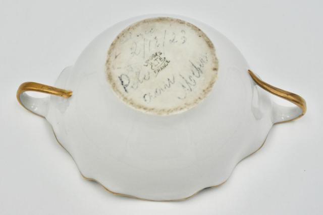 Te situeren eind 19de eeuw, begin 20ste eeuw. Mooie porselein uit Limoges. Met persoonlijke boodschap, gedateerd 1923.