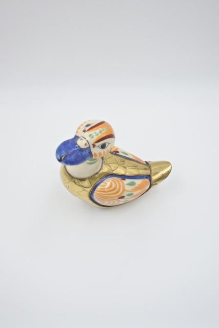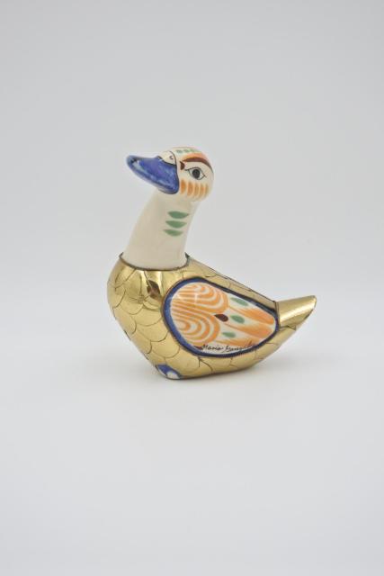 Een mix van materialen, keramiek en koper, is het kunstresultaat van de Mexicaanse beeldhouwer Mario Gonzáles. Werk uit de jaren 1980. In zeer goede staat. H:17 - B: 17 - D: 10 cm. 620 gram.