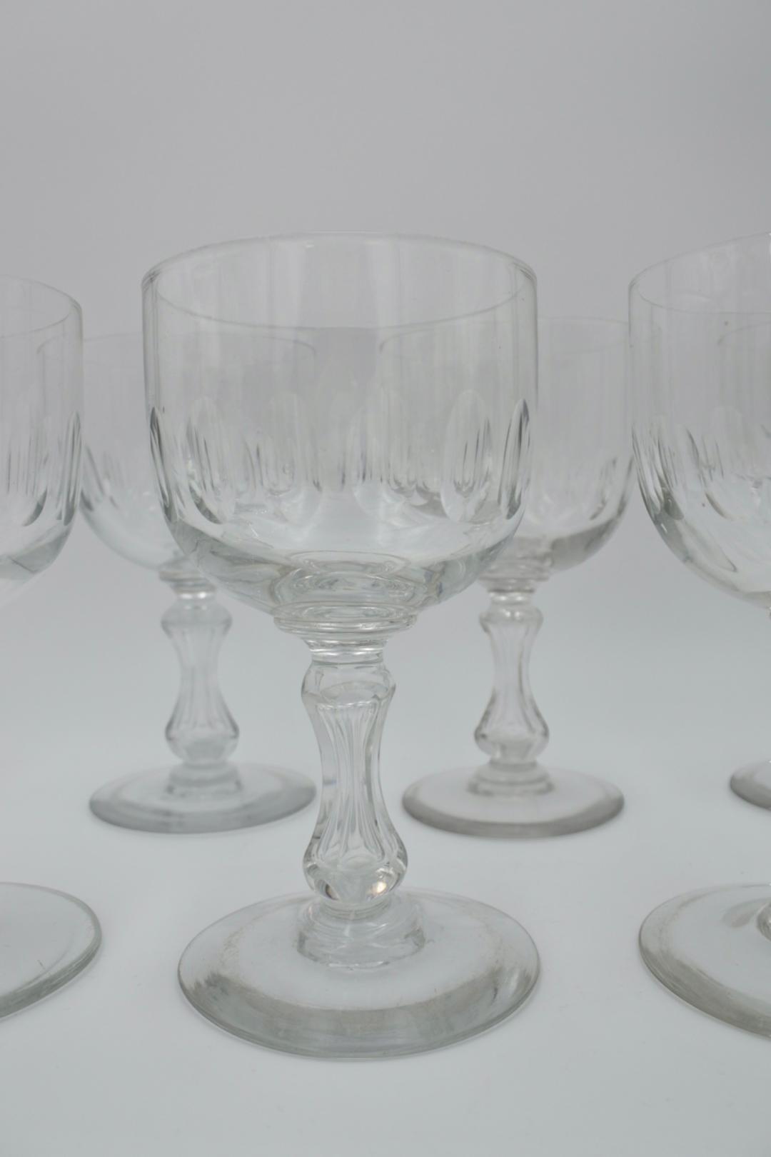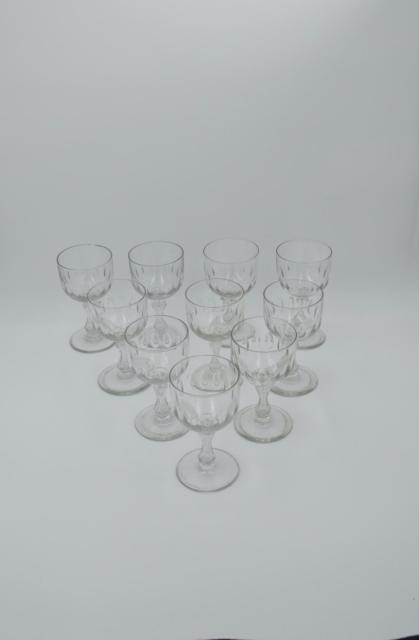 10 antieke drinkglazen uit de 19de en begin 20ste eeuw. Dit was een van de allereerste modellen van Val-Saint-Lambert kristalfabriek. De hoogte varieert tussen 15,2 en 16 cm. Het gewicht per glas tussen 203 en 276 gram omdat deze niet op hetzelfde moment zijn gemaakt. Ambachtelijk. 7 stuks zijn in uitstekende staat. 3 stuks hebben kleine stukjes af (zie foto’s).